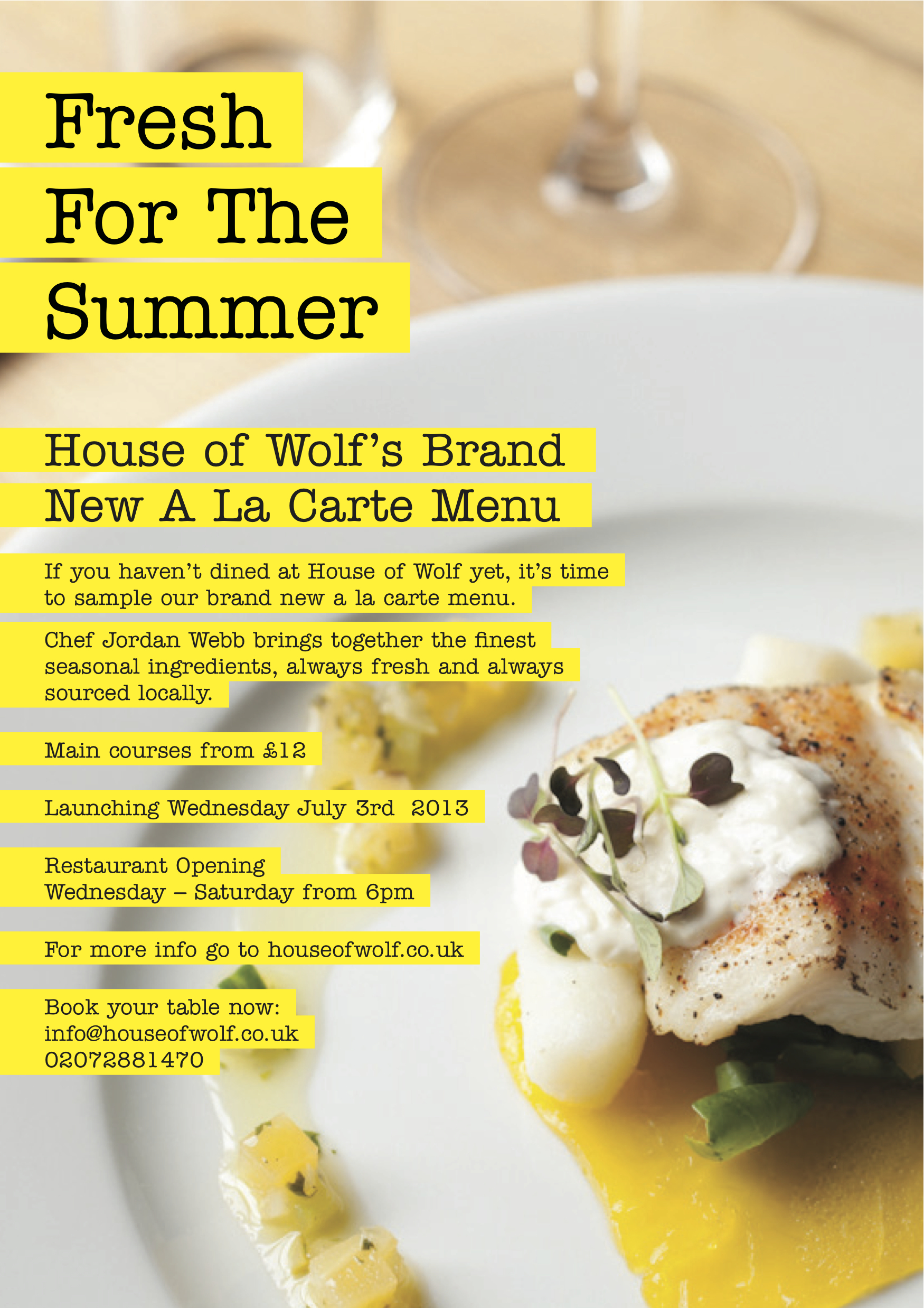 Our fantastic chef Jordan Webb has put together a great summer A La Carte menu for all to enjoy, it will be running along side our existing tasting menu